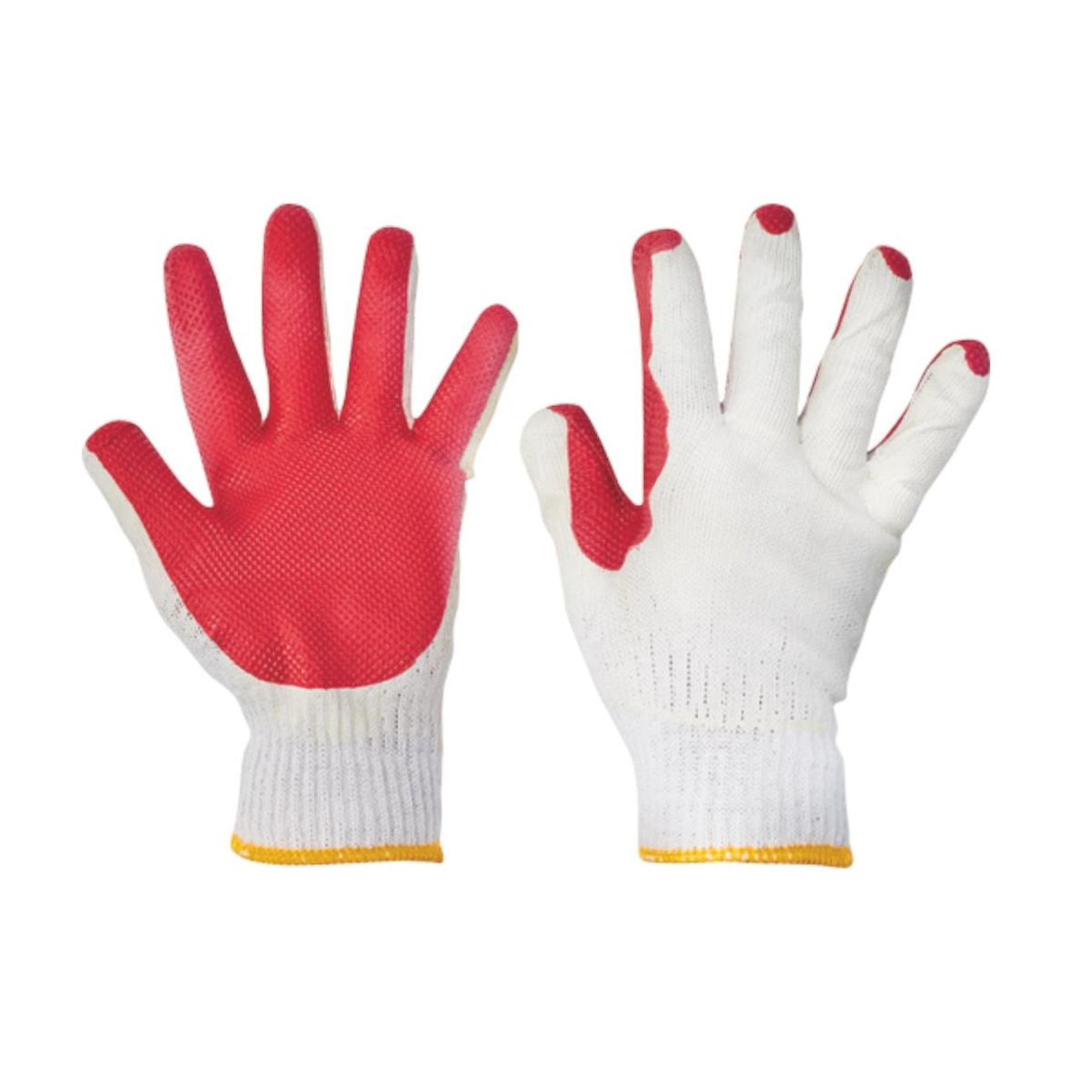 Kötött kevertszálas védőkesztyű erős PES/pamut szálból, latex impregnálással és extra latex mártással tenyéren.