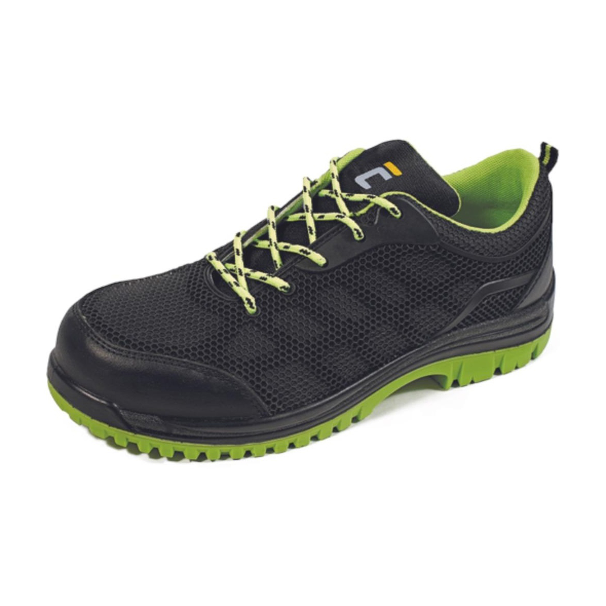 Biztonsági félcipő kompozit orrmerevítővel, textil átszúrás ellen védő köztalppal. Antisztatikus, csúszásbiztos, üzemanyagálló PU/PU talp, energiaelnyelő sarokkal. A felsőrész lélegző szintetikus anyagból készült.