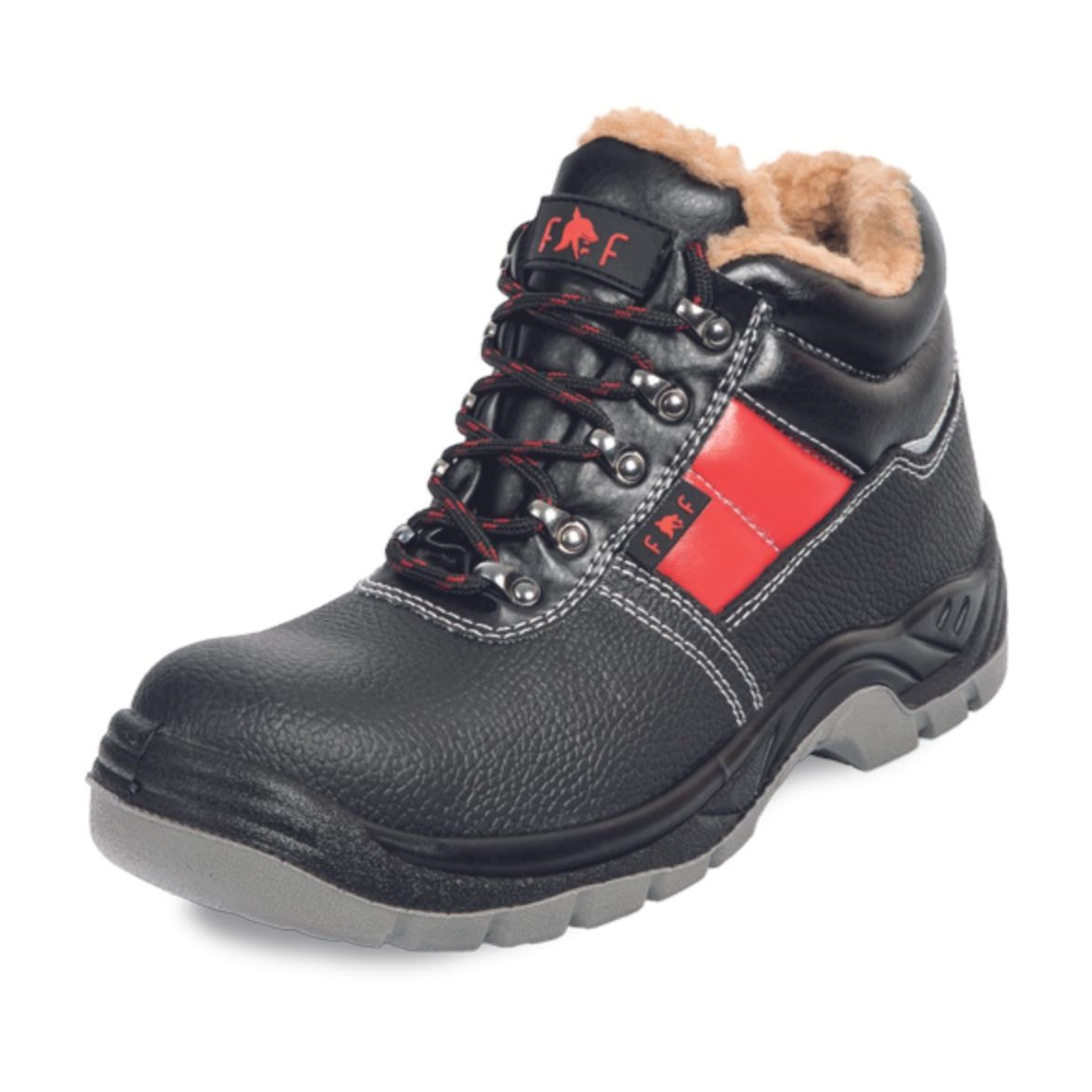 Hőszigetelt biztonsági bakancs acél lábujjvédővel és átszúrás ellen védő köztalppal, olajálló PU/PU talppal. A felsőrésze hasított bőr. Ezüst fényvisszavető elemek.