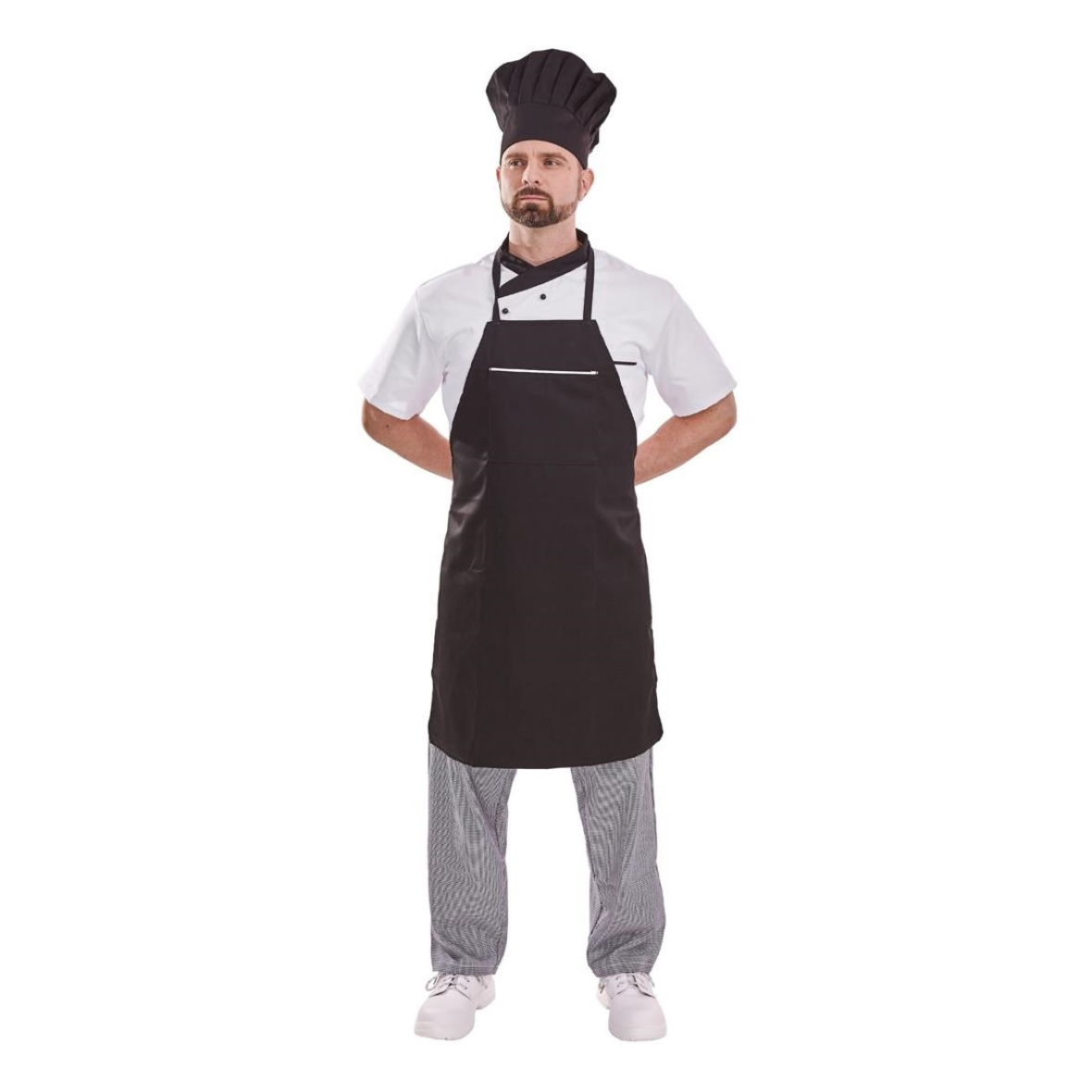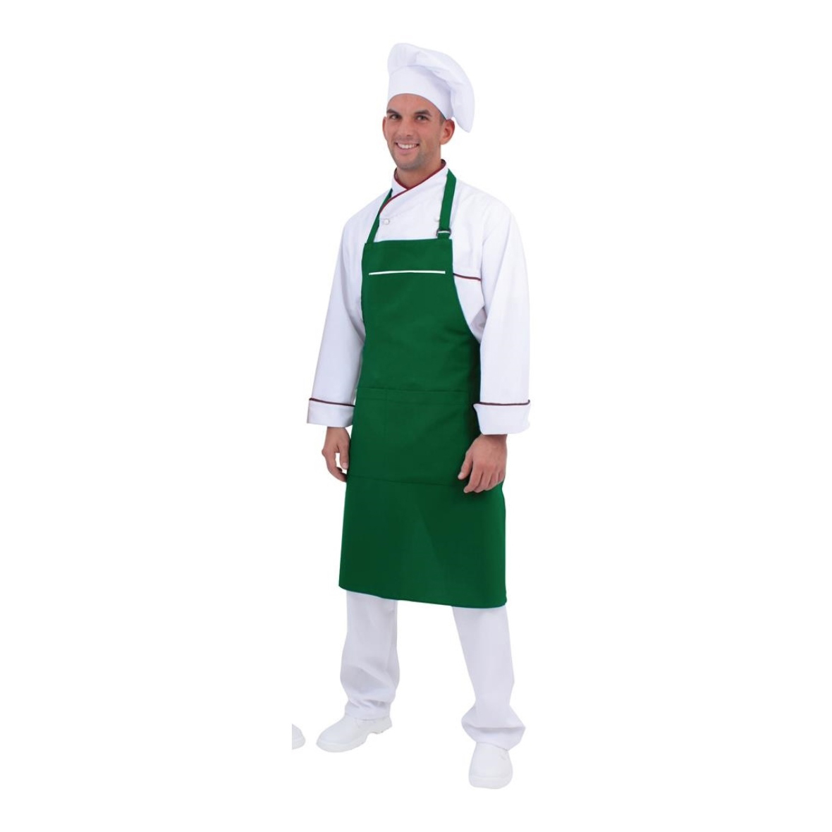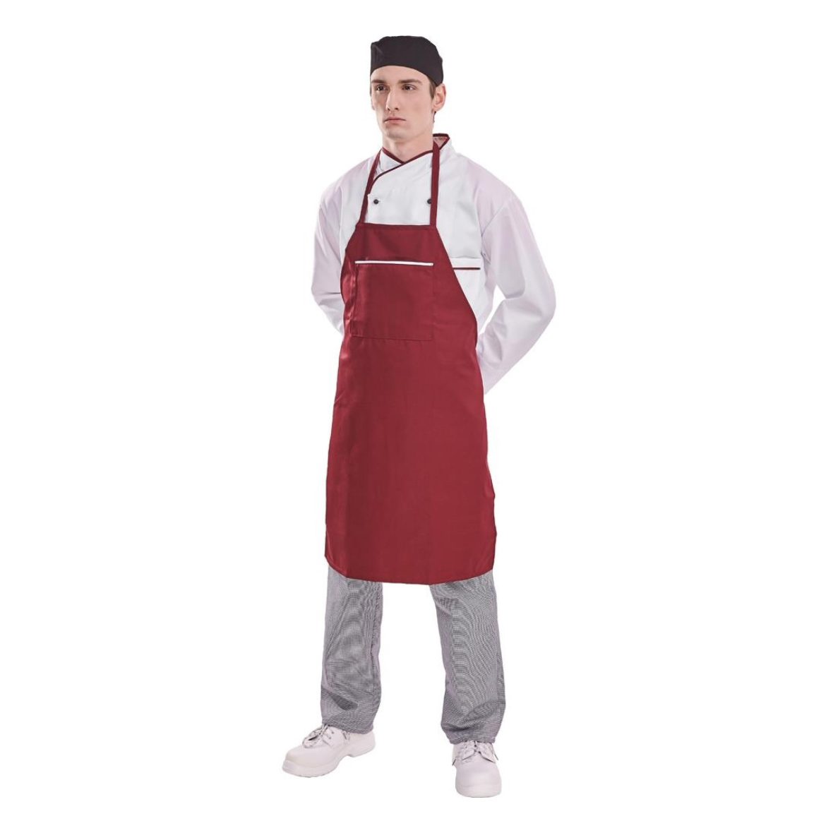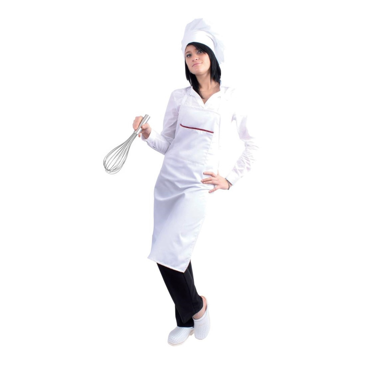 TELJES KÖTÉNY, FEHÉR: • 245 g/m² vastag, lánckötésű, 65% kopásálló poliészter, 35% pamut alapanyag • rögzítés derék- és nyakszalagokkal • 88 x 56 cm-es méret • nagy, széles mellzseb, kontraszt díszcsíkkal • szín: fehér • EU szabvány: EN340