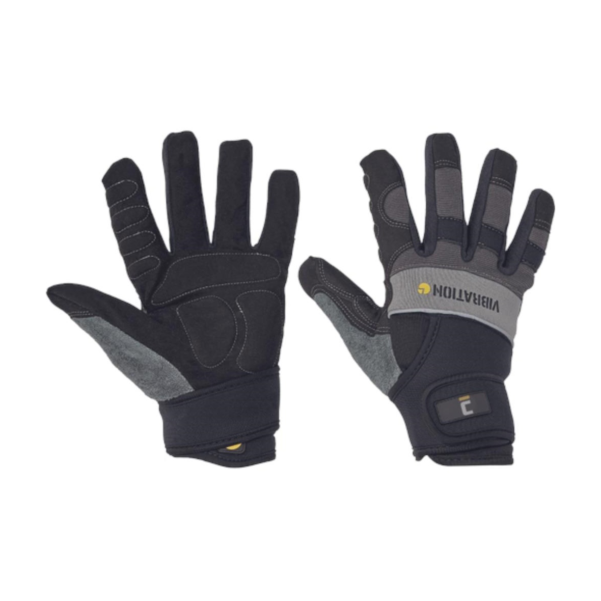 Művelúr tenyerű és Spandex kézhátú kesztyű ízületvédőkkel, tépőzárral összehúzható kettős mandzsettával és antivibrációs gélpárnákkal a terhelésnek kitett helyeken.
