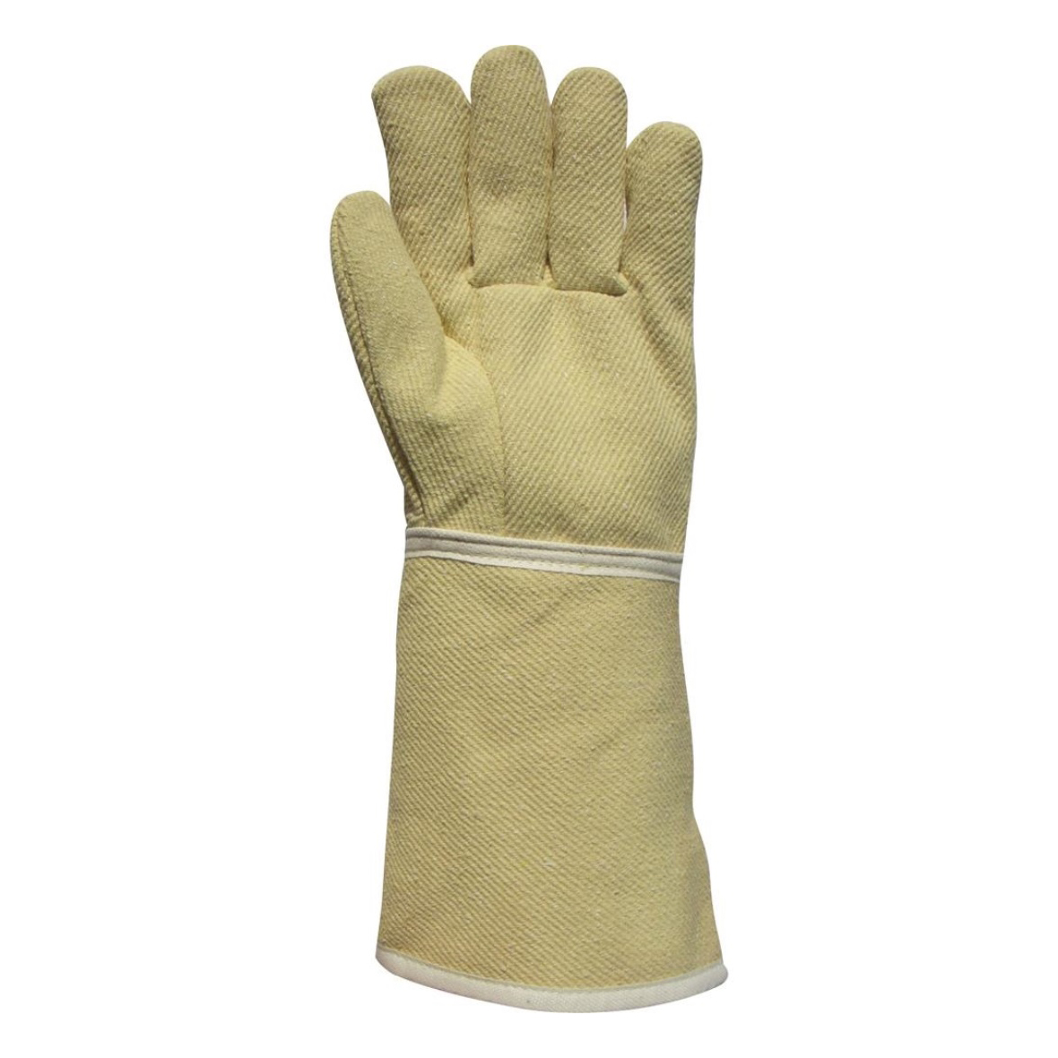 ÖTUJJAS HŐÁLLÓ KESZTYŰ 38 CM: • 350 g/m² vastag, hőálló, szövött para-aramid • belül teljes hosszában hőszigetelő, komfortos pamutbélés • 350°C kontakt hőhatásnál 15 sec időtartamig nyújt védelmet • nagy szakítószilárdságú anyag, mely véd olvadt fémcseppek ellen is • 38 cm hosszú, ötujjas változat • MÉRET: 10-es • CSOMAGOLÁS: 50/5 • EU szabvány: EN420, EN388: 2443, EN407: 43XX4X