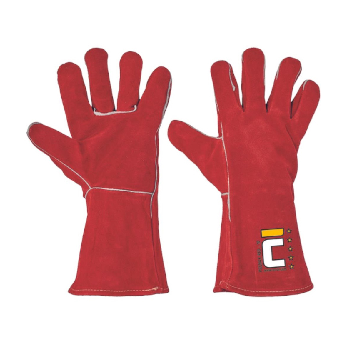 Bőr hegesztő védőkesztyű hasított marhabőrből, hossza 35 cm. Kevlar® cérnával készül.