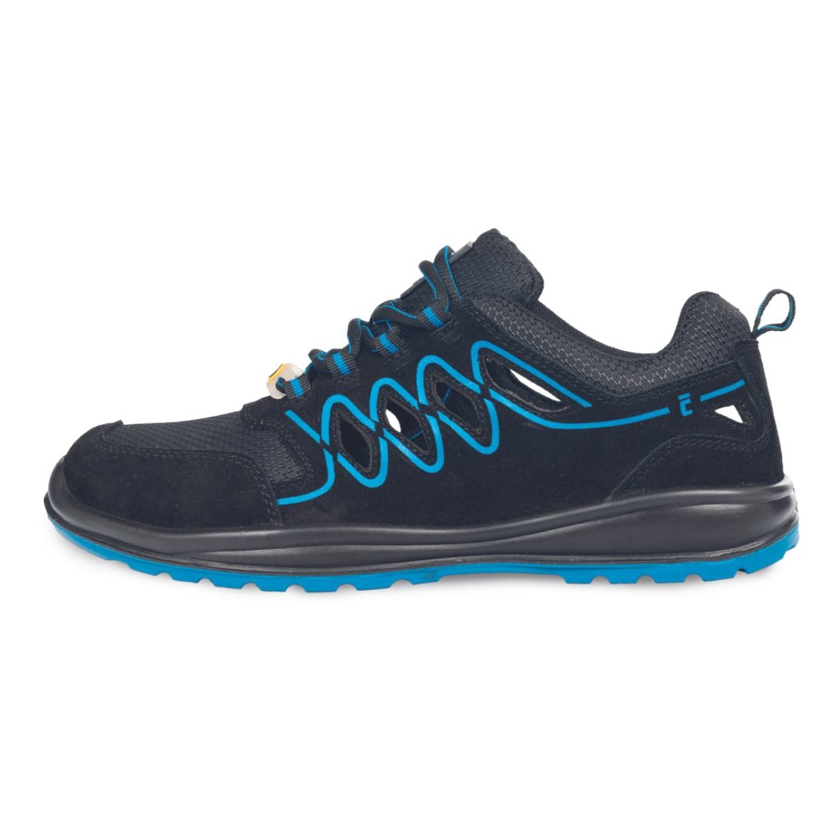 Biztonsági szandál acélbetétes orrmerevítővel és acél átszúrás elleni középtalppal, az EN ISO 20345:2022 szabvány szerint tanúsítva, S1P biztonsági osztályba sorolva. Antisztatikus és ESD talpbetéttel, dupla sűrűségű PU/PU talppal, amely sarokrészen energiaelnyelő tulajdonsággal rendelkezik. Tartós hasított velúrbőr felsőrész oxford szövettel kombinálva. Kiváló választás beltéri munkákhoz, például az autóiparban, logisztikában vagy ipari termelésben.