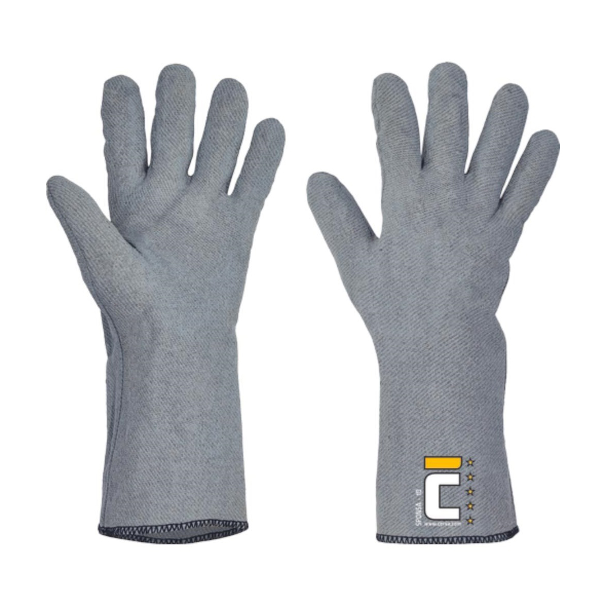 Speciális szövetből varrt, nitrilbe mártott kesztyű, 250°C#ig hőálló, nem szőtt textíliából készült szigetelő béléssel.