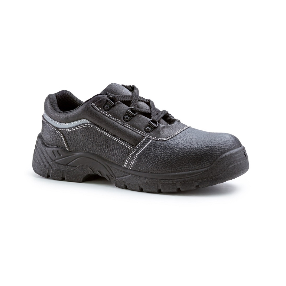 • Fekete biztonsági védőfélcipő acél orrmerevítővel és talplemezzel • Olajálló, antisztatikus kétrétegű PU talp, SRC csúszásmentesség és energiaelnyelő sarok • Sarokrészen fényvisszaverő díszcsík • Szellőző hálós belső bélés, kivehető talpbetéttel • Méretek: 35-48 • Alkalmazása: száraz, beltéri körülmények, közmunkák, könnyűipar, karbantartás, szolgáltatás stb.